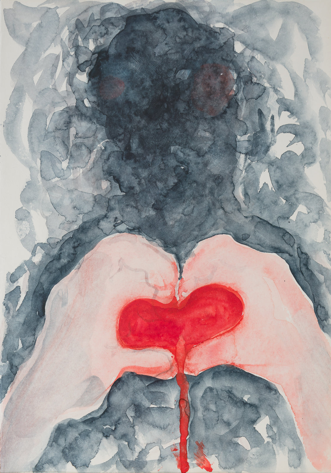 The resulting portraits feel less painted than grown - emerging from the paper’s materiality itself. They capture presence not only through image but through texture: the subtle warping of wet paper, the feathered edges of diluted tones, the tension between saturated form and dissolving contour. Vulnerability and serenity arise from these material interactions, revealing an interior landscape shaped as much by water and fiber as by the artist’s hand.